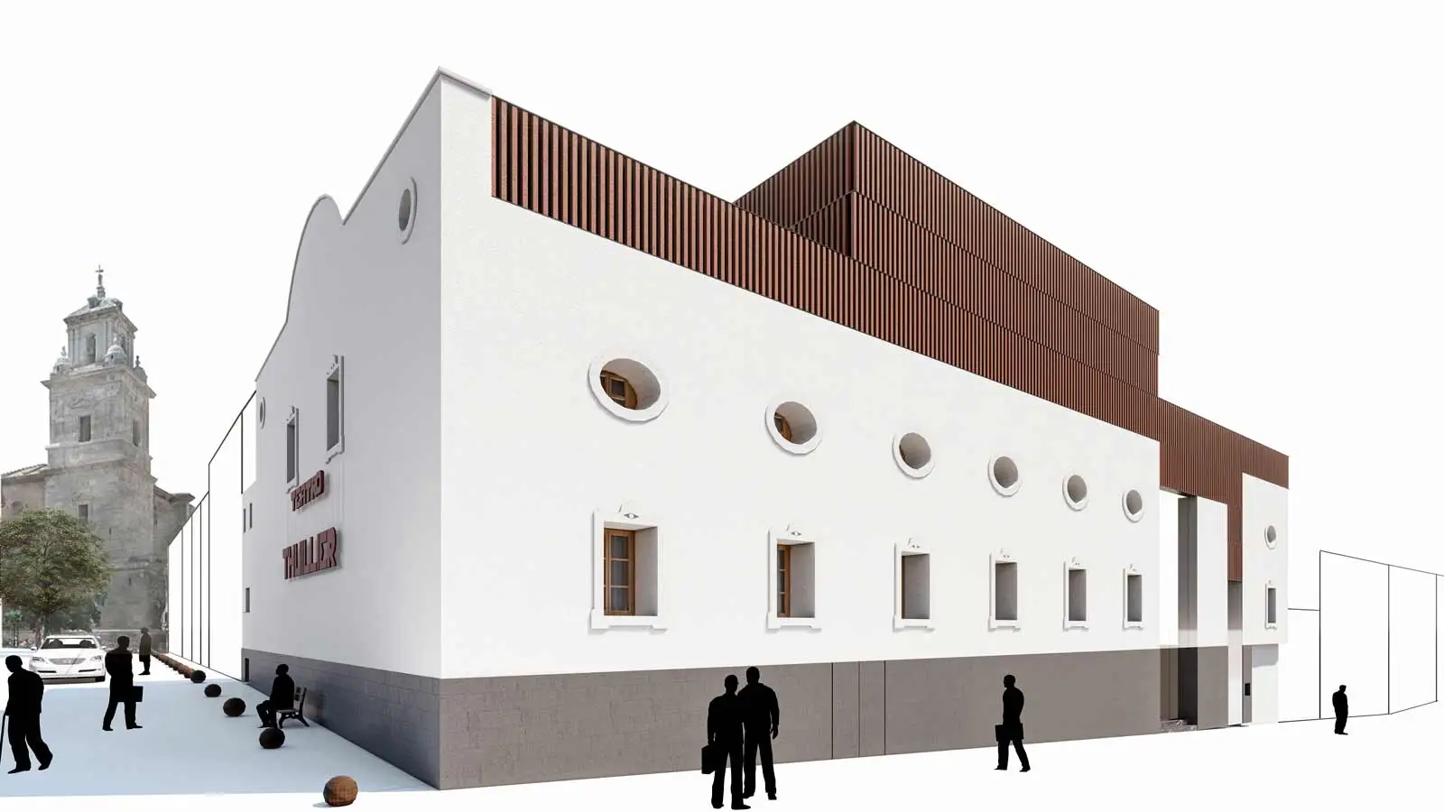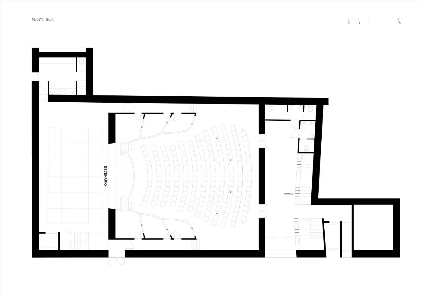 La propuesta se muestra en todo momento respetuosa con el edificio mantiene su esencia y solo se actúa en los lugares necesarios para conseguir una mejora sustancial en eficiencia energética, sostenibilidad ambiental, accesibilidad y habitabilidad. De esta manera podemos dividir las actuaciones a realizar en 3 zonas, la caja escénica, la sala y el vestíbulo. En la caja escénica a pesar de ser necesario dotarla de mayor altura lo que aumentaría sus prestaciones el hecho de situarse en la fachada principal hace que se desista de la actuación para no distorsionar el perfil de la edificación que se muestra a la Plaza Nueva, de cualquier manera se dispone de un nuevo peine y contrapeine, galerías técnicas, escaleras y montacargas y se aumenta la dimensión del foso de escena. En el sala tan solo se actúa sustituyendo la cubierta creando un nuevo falso techo con una adecuada