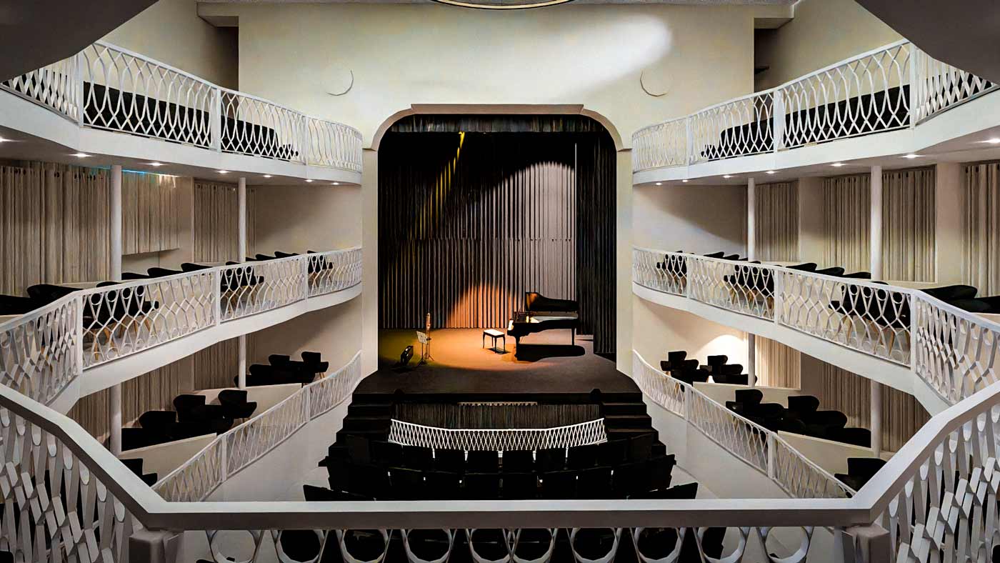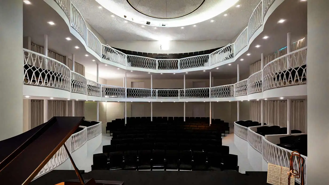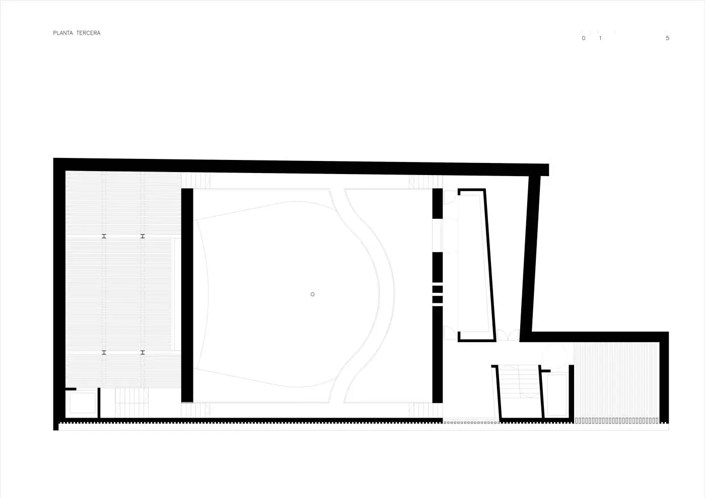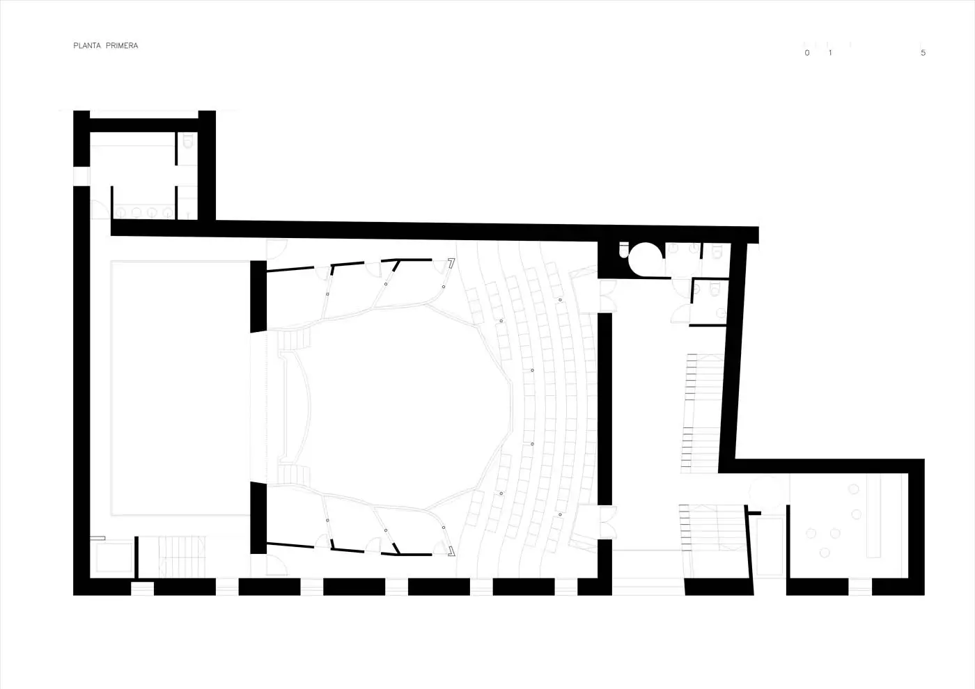 posición de galerías técnicas que permitan montar puentes de luces y comunicar el peine con las salas de proyección, de control de sonido y de dimmers que se ubicarán en la planta superior del vestíbulo rediseñado mediante la introducción de nuevas escaleras, nuevos núcleos de aseos adaptados, una pequeña cafetería en planta primera, y lo fundamental, un ascensor que junto con el dispuesto en la caja escénica recorra todas la plantas útiles del teatro permitiendo una total accesibilidad del edificio.
